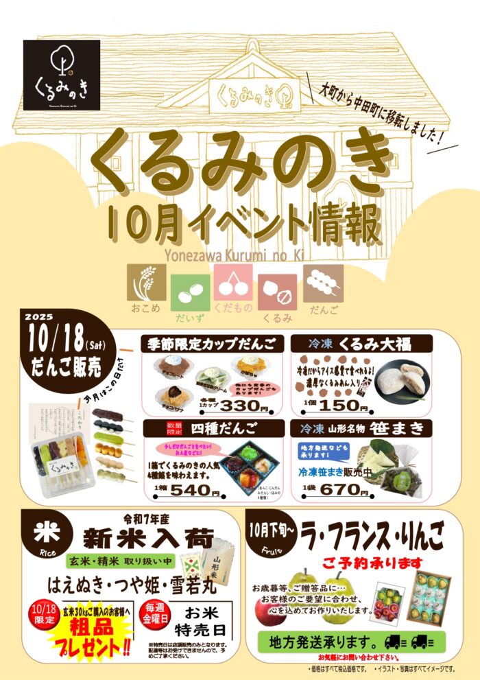 ※今月のだんご販売は10月18日(土)この日だけになります。ご注意くださいませ。